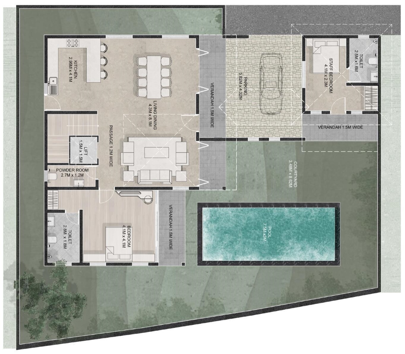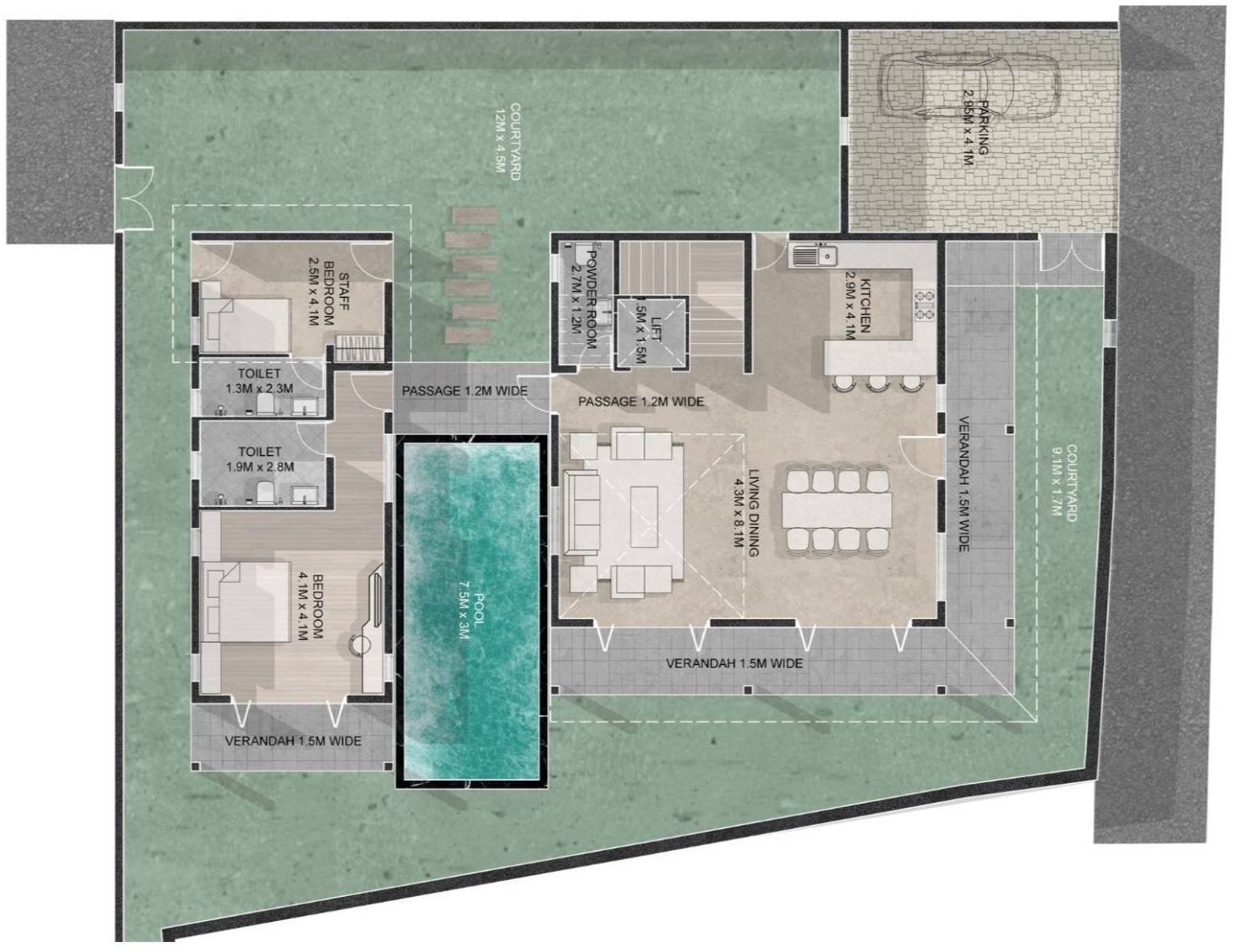 - Pool – 7.5M x 3M